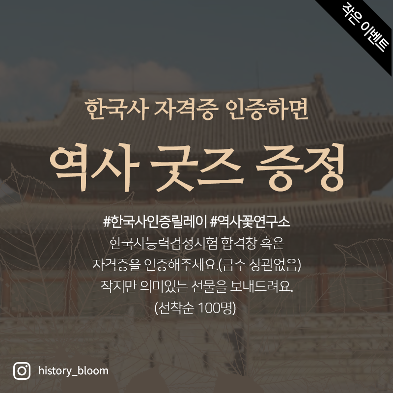#역사꽃연구소 의 작은이벤트입니다🎁 한국사능력검정시험 합격 인증을 SNS에 올려주시는 모든 팔로워 분께 작은 역사 굿즈를 보내드려요. 급수는 상관없어요.